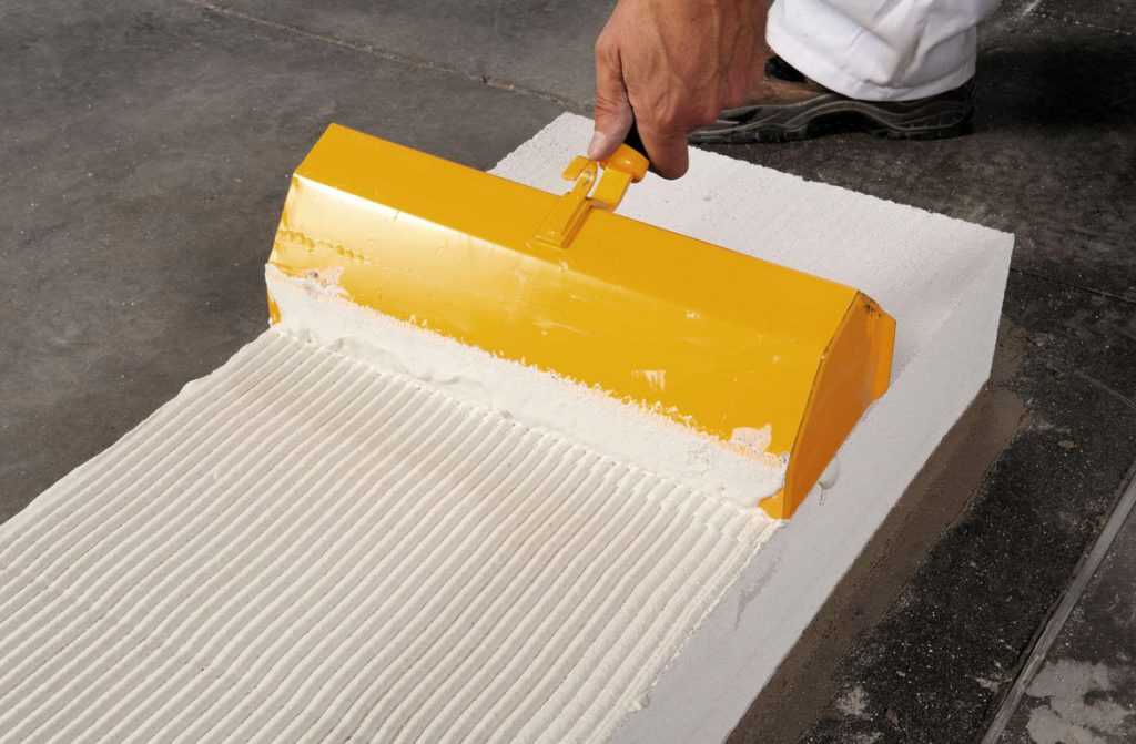 Не разрешается проводить процедуры по склеиванию бетона в стенах без хорошей гидроизоляционной системы. Несоблюдение этого правила повлечет за собой риск образования трещин. Для нанесения клейкого вещества понадобится применить гладкий шпатель или кисточки, а для распределения — зубчатый инструмент.
