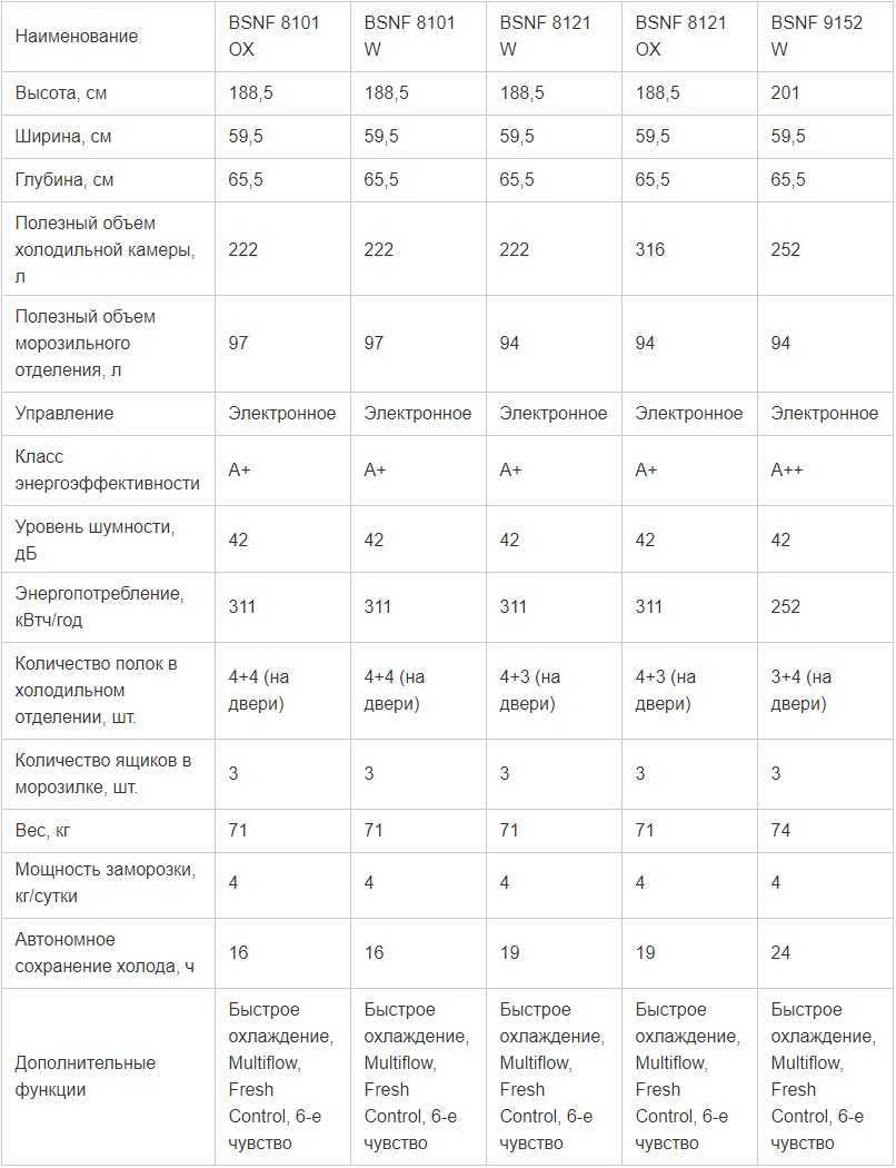 - BSNF 8101 OX, BSNF 8101 W, BSNF 9152 W, BSNF 8121 W, BSNF 8121 OX (No Frost);