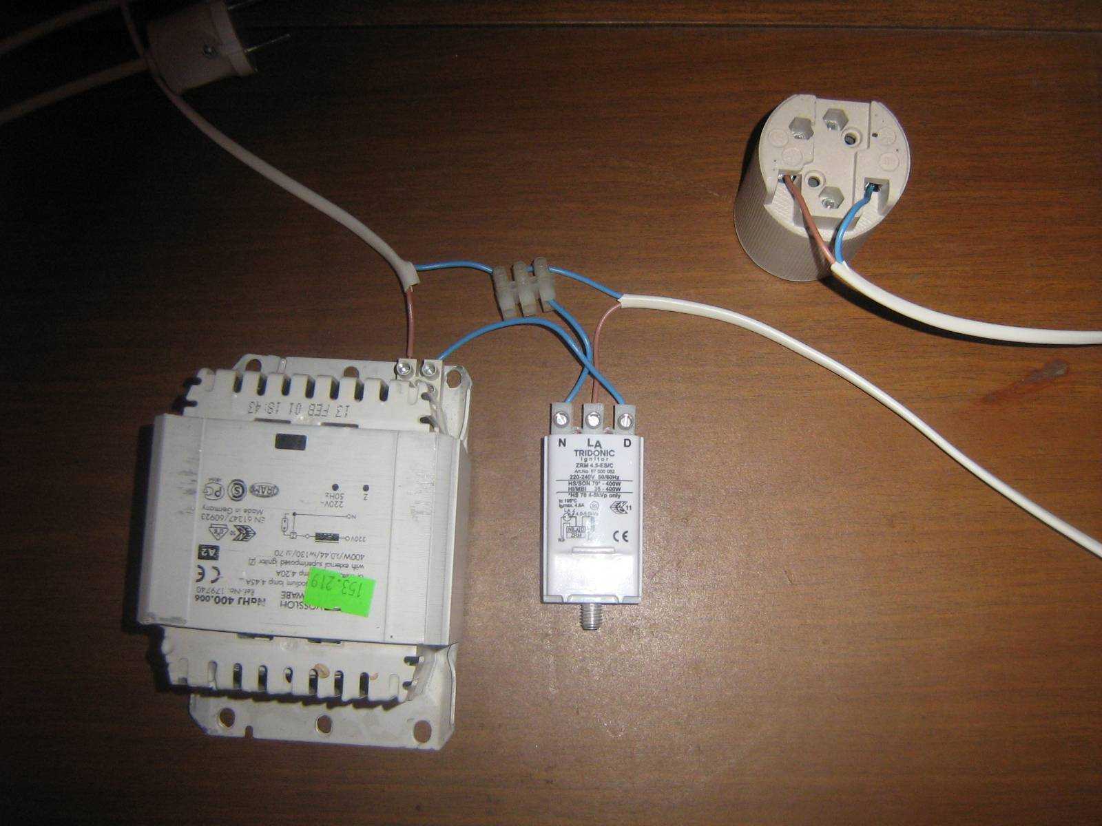 При включении питающего кабеля к лампочке необходимо помнить, что в роли ограничителя тока будет дроссель.