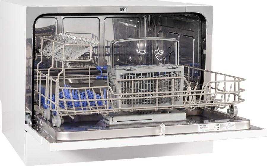 Это одна из самых лучших компактных моделей, обладающих всеми важными функциями. Пользователи умудряются за один раз помыть несколько наборов посуды, ножи, сковородку и кастрюлю. Из важных преимуществ — наличие самоочистки фильтров, компактность, простота установки и экономный расход порошка. Для полноценной качественной мойки достаточно всего половины таблетки. Из недостатков — при длительной эксплуатации нередко начинает протекать.