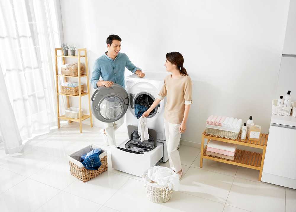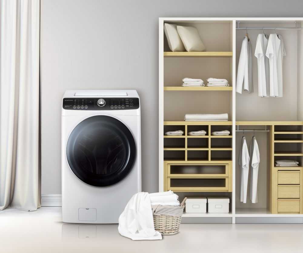 Стиральная машина с функциями сушки и глажки легко вписывается в интерьер и становится незаменимым помощником.