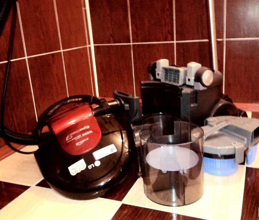 - Пылесос LG V-K89382HU. Эта модель оснащена циклонным фильтром. Ее компрессорная система выделяет из воздуха и спрессовывает всасываемую пыль. Это позволяет разместить в контейнере в три раза больше мусора. Но не только благодаря этому модель получает прекрасные отзывы потребителей. Ее четырехслойный фильтр оставляет воздух в помещении максимально чистым, а высокая мощность всасывания позволяет производить уборку больших площадей без остановки прибора для очистки контейнеров.