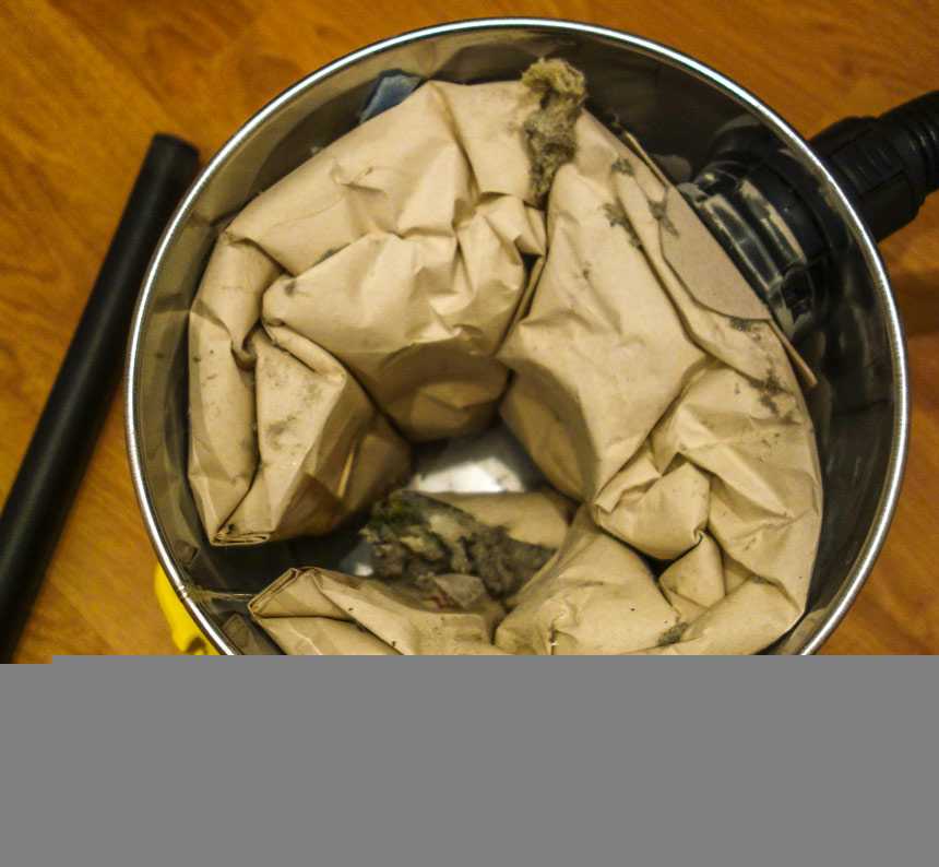Мешок из плотной бумаги следует использовать только для сухой чистки помещений или обивки мягкой мебели. После заполнения его утилизируют, заменяют новым