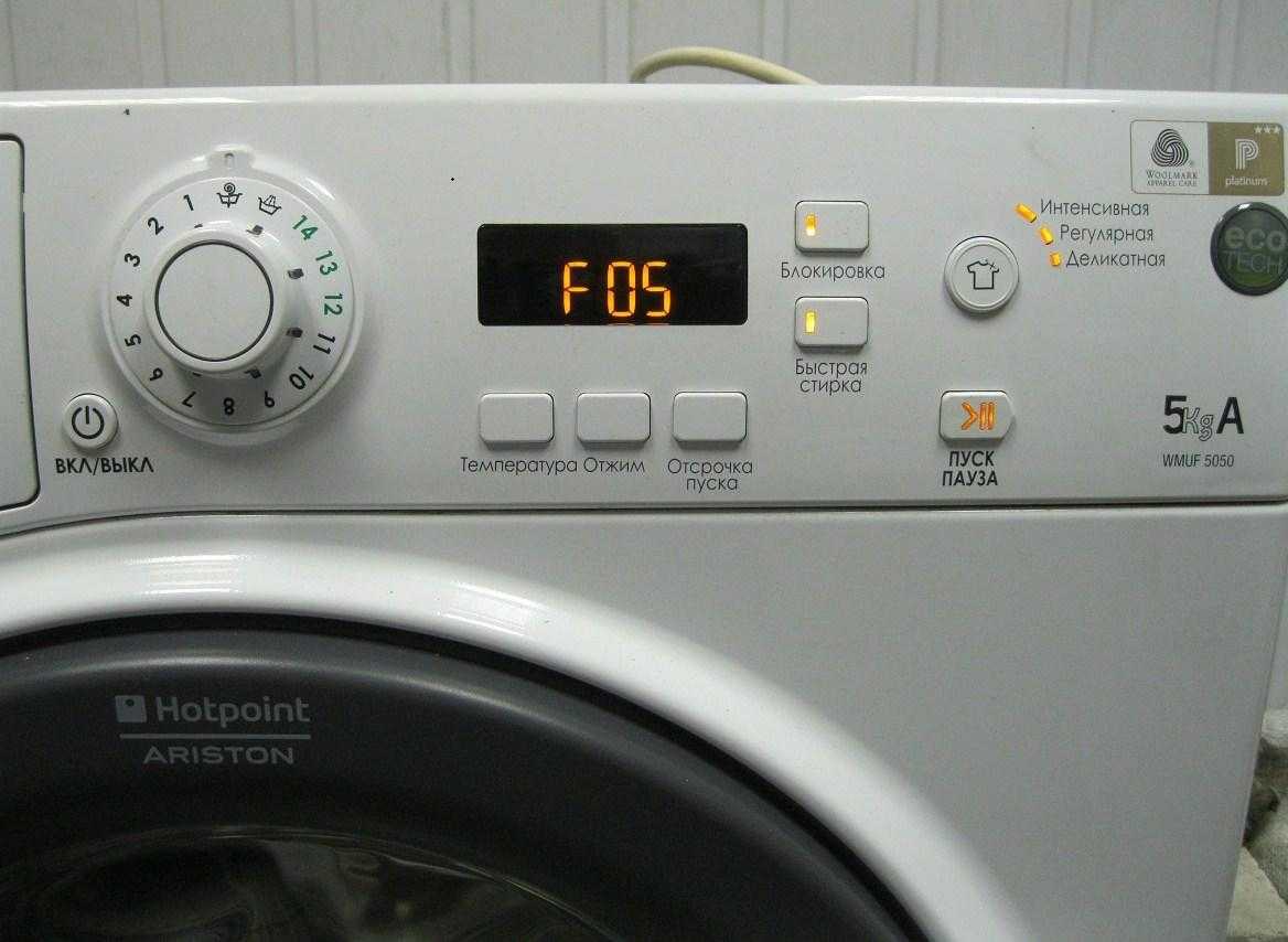 Что делать если машинка выдает код Ф 05? Нужно первоначально обратить внимание на инструкцию от производителя, так как там отображаются все данные моменты самым наилучшим образом. Изготовитель Индезит и Аристон очень щепетильно относится к своей продукции, а потому есть возможность из инструкции узнать и расшифровку кода ошибки и даже то, как ее можно устранить