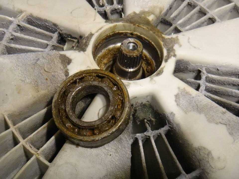 Подшипники. Когда бак «располовинен», из него вытаскиваются сальники, и выбиваются подшипники. Место, где были подшипники, очищается. Сальники смазываются специальной смазкой, а чтобы новые детали лучше садились, можно погреть место установки феном.