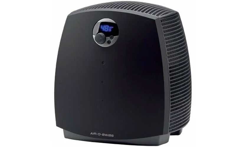 Не слишком большой климатический комплекс (36х36х36 см), способный вписаться в любой интерьер. Ему легко найти место везде. Потребляет немного энергии (20 Вт) и может обработать помещения до 50 кв.м. В резервуар помещается 7 литров воды, и при расходе прибора 300 мл/ч этого объема хватит на 23 часа беспрерывной работы. При этом прибор самостоятельно измеряет уровень влажности и решает, нужно ли добавить ещё.