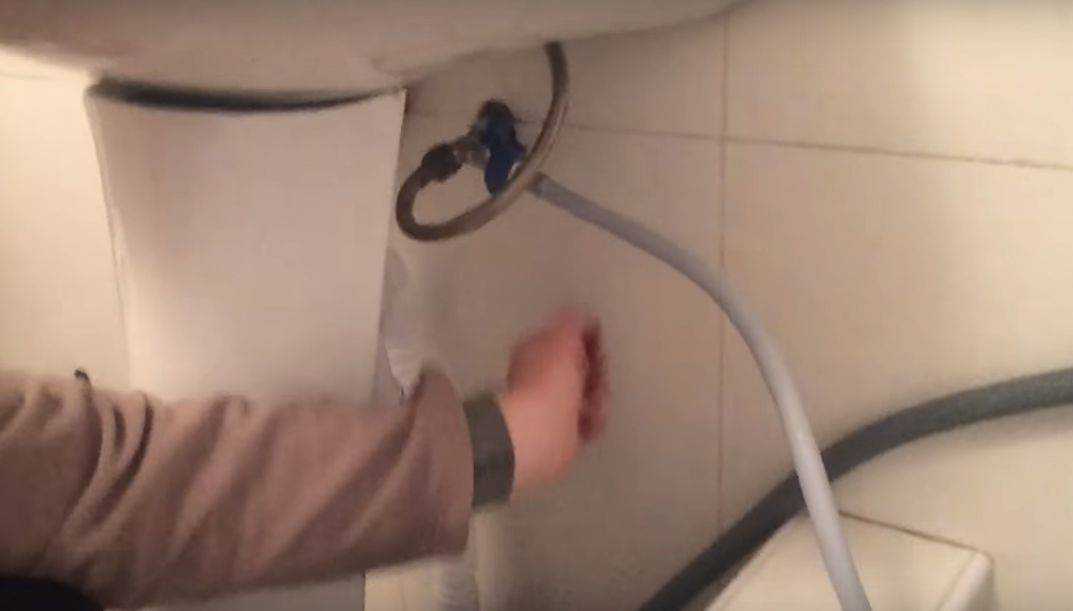 В место ввода воды вставляется фильтр, который входит в комплектацию агрегата. Вручную вкручивается гайка, соединяющая шланг с машиной. Резиновый уплотнитель обеспечивает герметичность. Второй конец шланга также вручную (без ключей) соединяется с краном холодной воды.