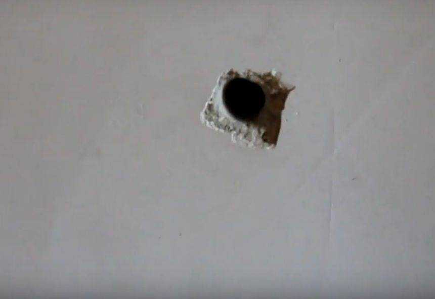 2. Берем маленький отбойник и пробиваем небольшую точку на том месте, где будем прорезать отверстие. |