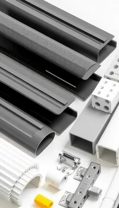 Кабель-каналы изготавливаются из различных материалов: пластика (ПВХ, полипропилен), алюминия и стали. Выбор материала зависит от условий эксплуатации и требований к эстетике.