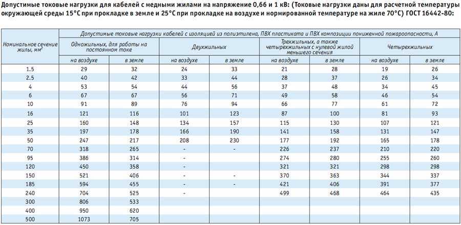При подборе сечения кабеля более правильная методика — по максимальному току. В связи с этим нормируется такая характеристика как длительно допустимый ток. Он зависит от количества и сечения жил, а также от способа прокладки — открытой или закрытой.