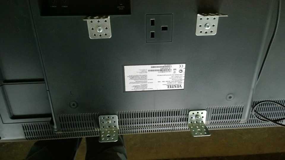 Если производитель ТВ-модели не предусмотрел такой способ монтажа, сделайте крепеж самостоятельно. Для этого подойдут металлические уголки, пластины и фиксирующие винты.