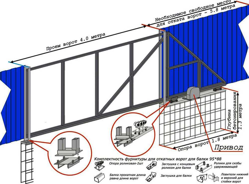 Перед установкой откатных ворот убедитесь в том, что проем имеет размеры, соответствующие воротам, а места для отката достаточно и в нем отсутствуют препятствия.