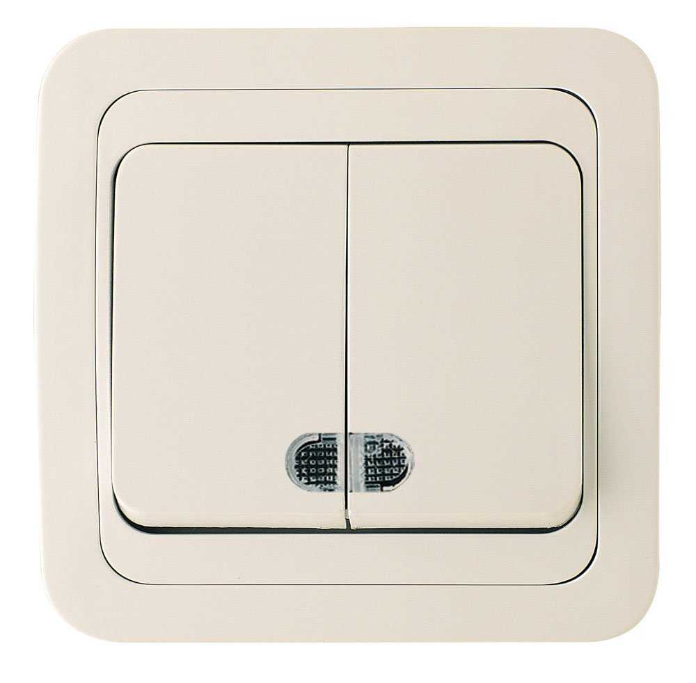 В отличие от обычного, выключатель с подсветкой снабжен световой индикацией, в роли индикатора выступает неоновая лампа или светодиод, подключенный параллельно к контактам устройства и токоограничивающий резистор, понижающий напряжение в сети.