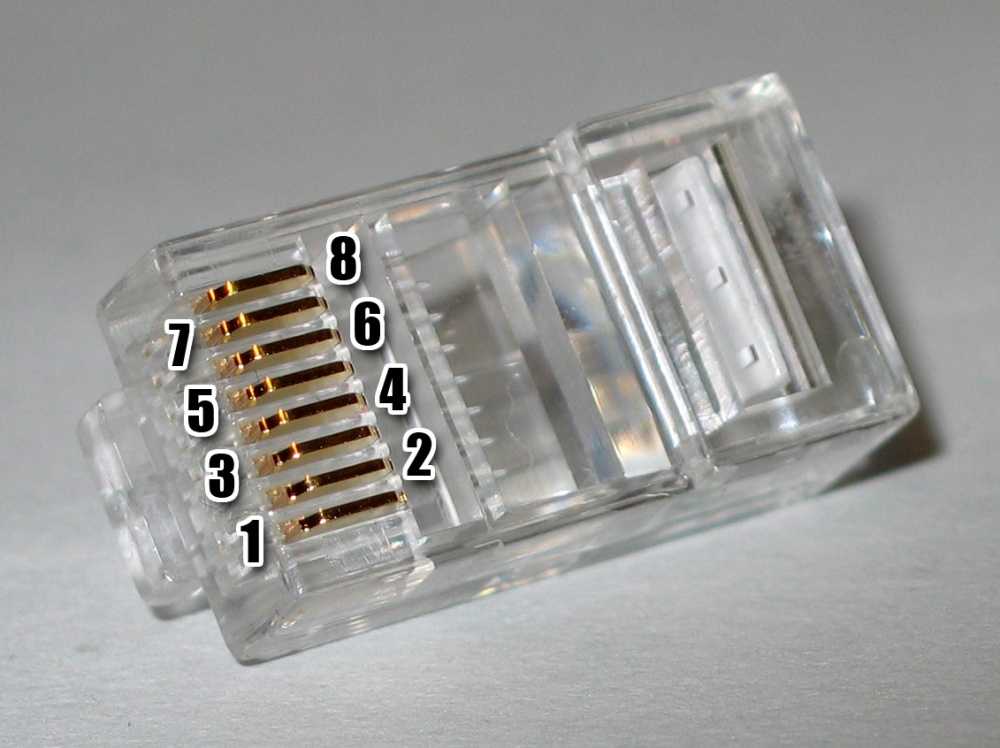 Разъем RJ-45. Речь идет о стандартном коннекторе, при помощи которого подключаются сетевые устройства. Именно он и будет использоваться нами для закрепления его на зачищенных от изоляции жилах.