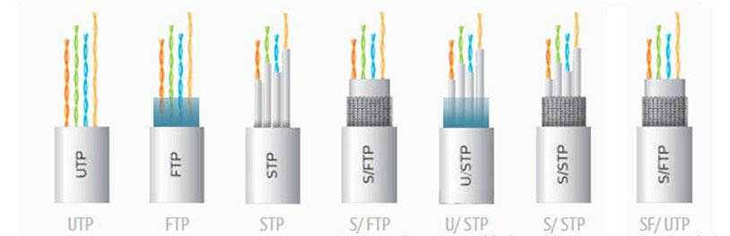 Помимо категорий, медные кабеля различают по конструкции. Выделяют следующие разновидности кабеля: