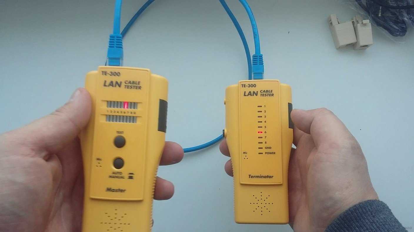 - Есть соответствующий прибор, который называется кабельным тестером. Он совместим с большим количеством типов коннекторов. Оба конца кабеля вставляются в соответствующие разъемы, и индикатор показывает, есть ли соединение между частями прибора. Мы думаем, каждый сам сможет разобраться, как пользоваться таким устройством.