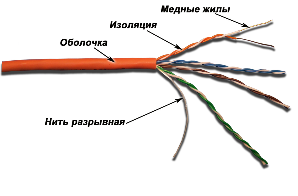 Помимо категорий, медные кабеля различают по конструкции. Выделяют следующие разновидности кабеля: