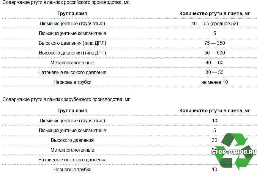 После истечения срока использования люминесцентные лампы необходимо утилизировать. Они содержат от 3 до 5 мг ртути — вещества, относящегося к первому классу токсичных отходов.