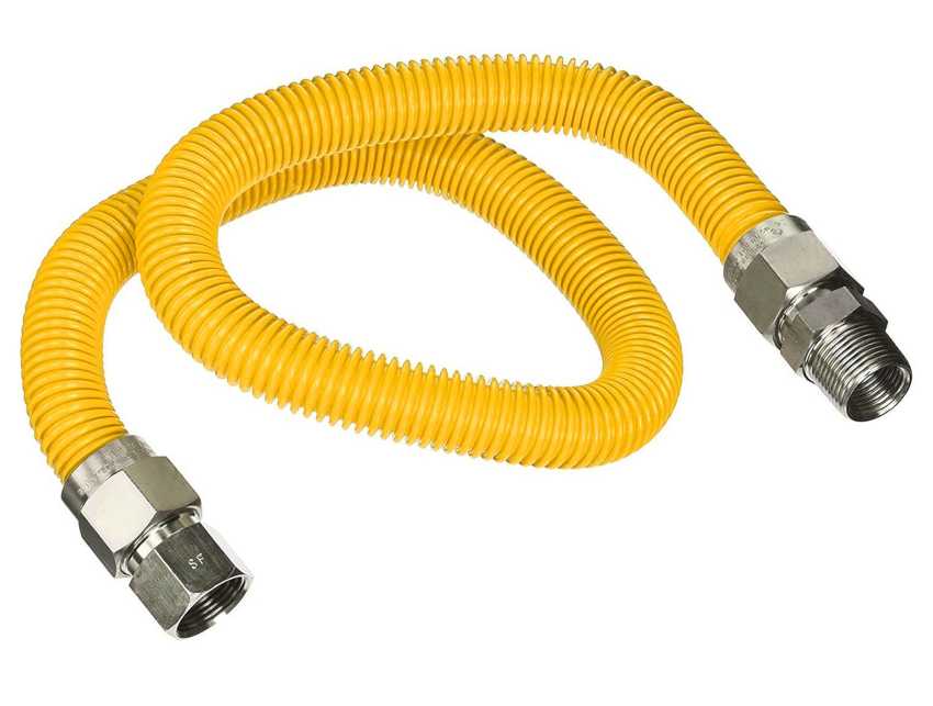 Отличительной чертой товаров используемых для подводки голубого топлива является наличие жёлтой отметки на оплётке. Самыми ходовыми считаются соединительные экземпляры длиной 1 – 2 метра.