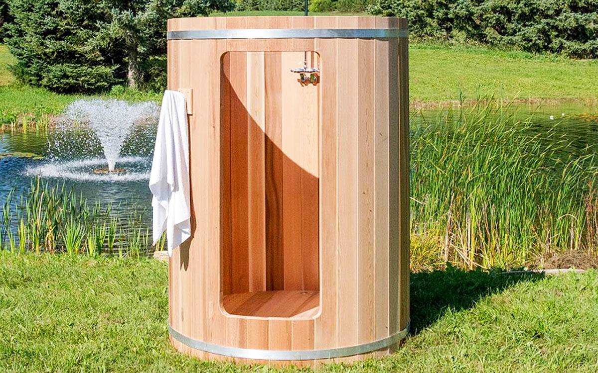 Все вышеперечисленные виды душа хороши тем, что не требуют обустройства фундамента и слива. Но и недостаток очевиден – возможность их использования целиком и полностью зависит от погодных условий.