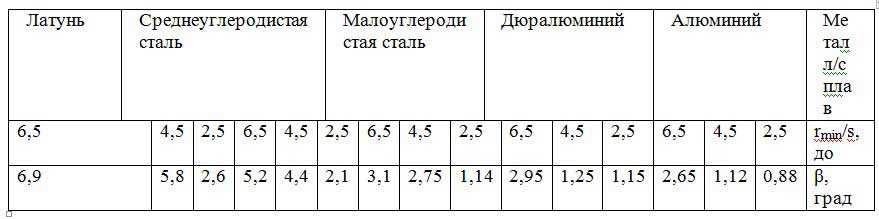 Эффект вероятного пружинения можно учесть при помощи данных по фактическим углам пружинения β, которые приведены в таблице 3. Данные в таблице соответствуют условиям одноугловой гибки.