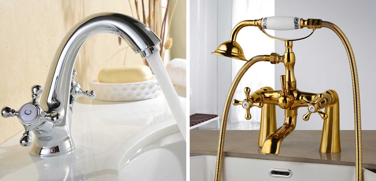 - ️ Традиционный стиль оформления. Двухвентильные смесители являются лучшим выбором для помещений, оформленных в классическом стиле.