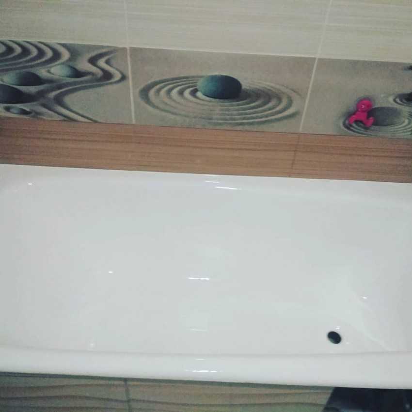 Акрил, подходящий вариант для обработки поверхности ванны, он долговечнее эмали, служит до 10 лет.