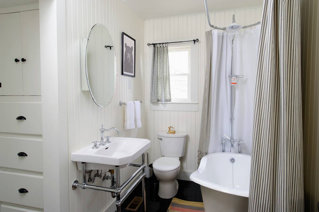 ванная комната выглядит изящно с конструкцией из металла, если не предусмотрен монтаж декоративного экрана;