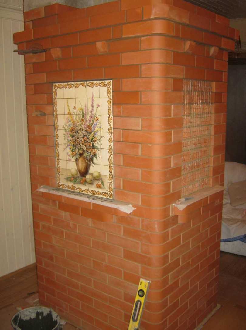 Для облицовки такой печи обычно используется изразцовая плитка, декоративная штукатурка, декоративный камень.