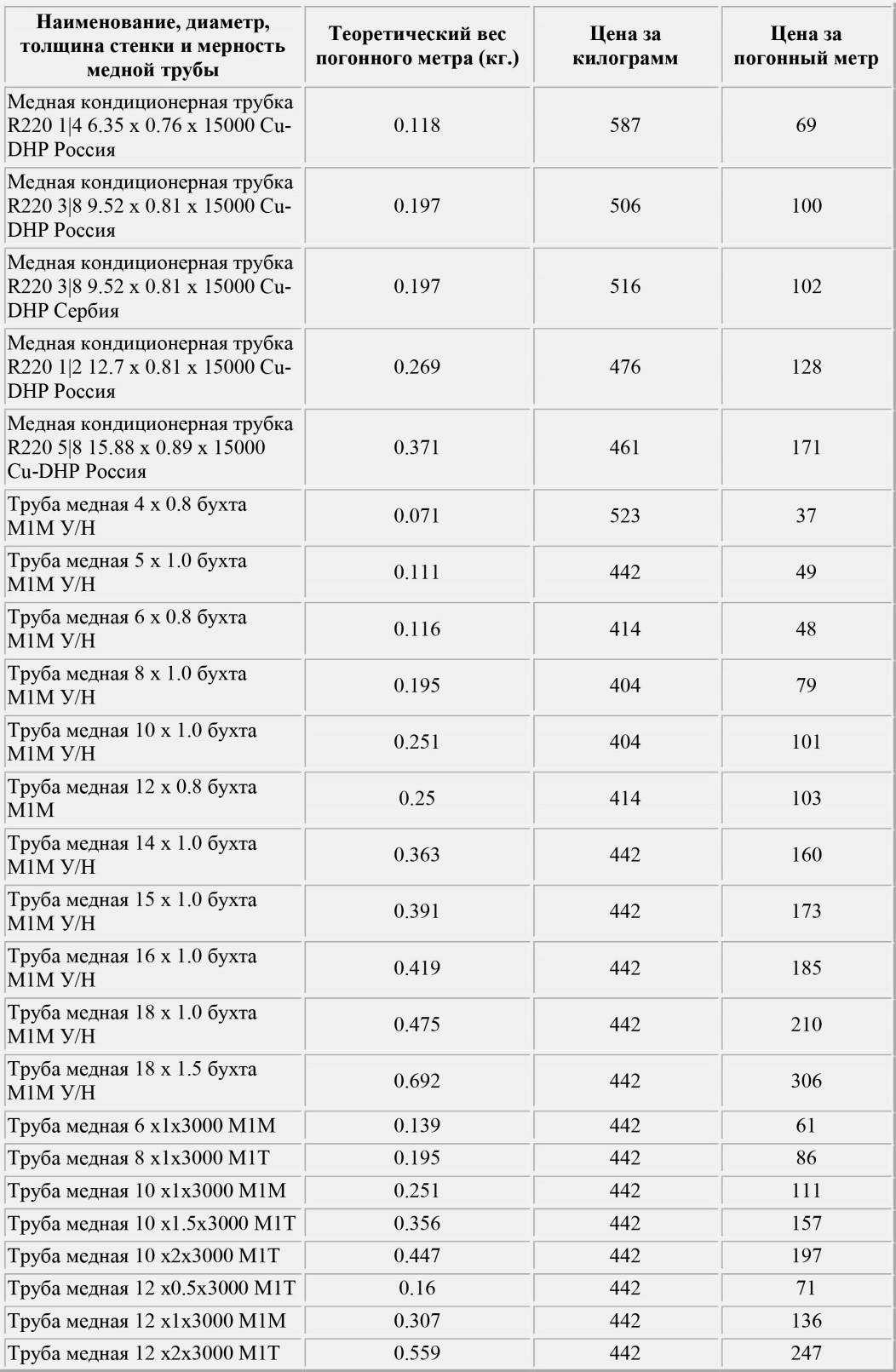 Вес у такой арматуры, например, как медная трубка, по сравнению с современной пластиковой продукцией, выше. Возьмем в качестве примера изделие длиной 5 метров, с внешним диаметром – 30 мм и толщиной стенки – 5 мм – его вес будет 17.4 кг.