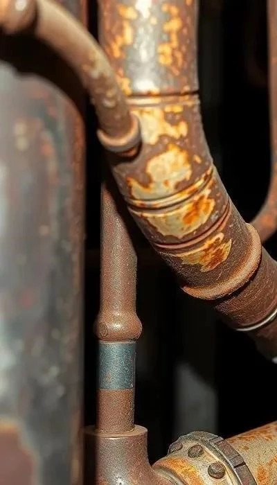 - Коррозия: Ржавчина на поверхности труб – явный признак износа, особенно характерный для стальных труб.