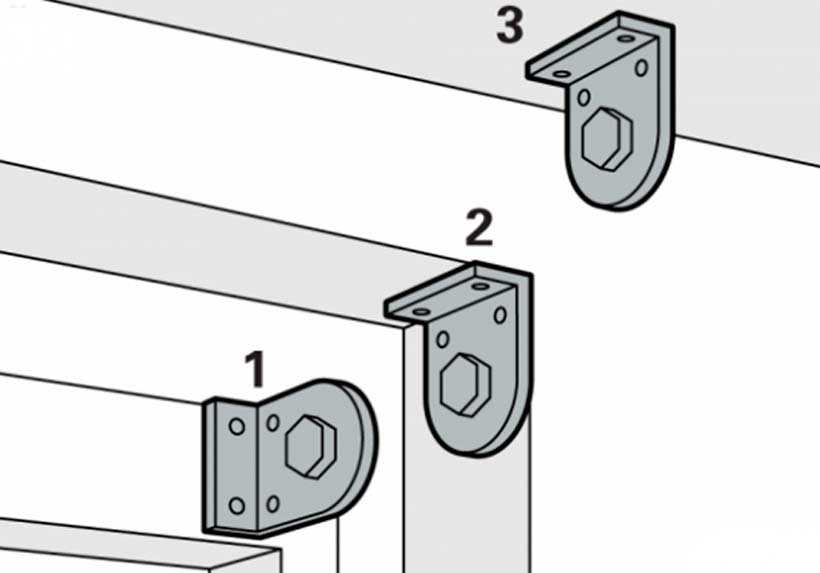 Шаг 5. Правый и левый крепежи (в соответствии со сторонами и метками) саморезами прикручиваем к потолку/стене.