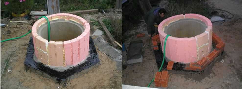 Если колодец уже построен, то необходимо несколько колец освободить от грунта. Когда они просохнут, то можно обмазать их и приклеить рубероид