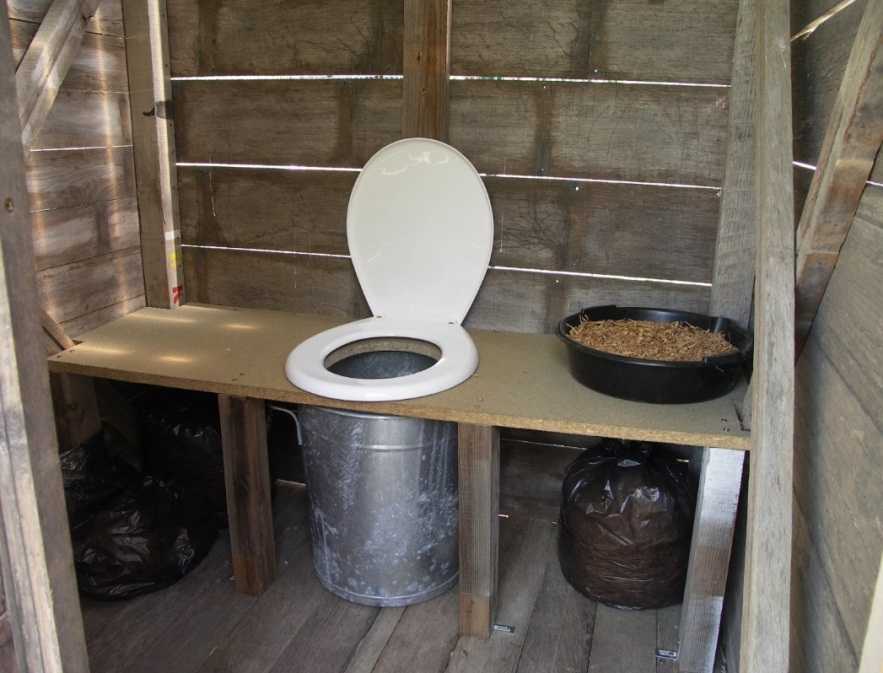 - Этот вариант туалета лучше подходит для участков с обильными насаждениями – при условии, что их хозяева не гнушаются работы, связанной с выемкой компоста с его специфическими запахами. Большой участок позволяет значительно удалить туалет от дома, хотя в зимнее время это не очень-то и удобно.