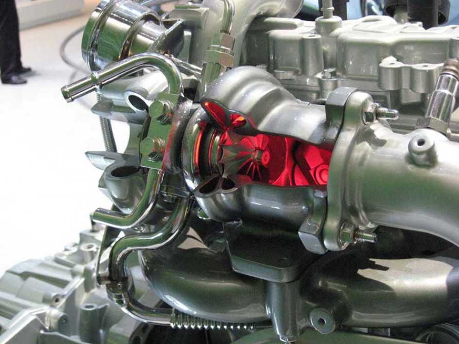 Это модернизированный вид ДВС, в конструкции которого есть специальная турбина. Ее задача – закачать дополнительный объем воздуха к цилиндрам для увеличения мощности двигателя (в среднем прирост составляет 10-15%).