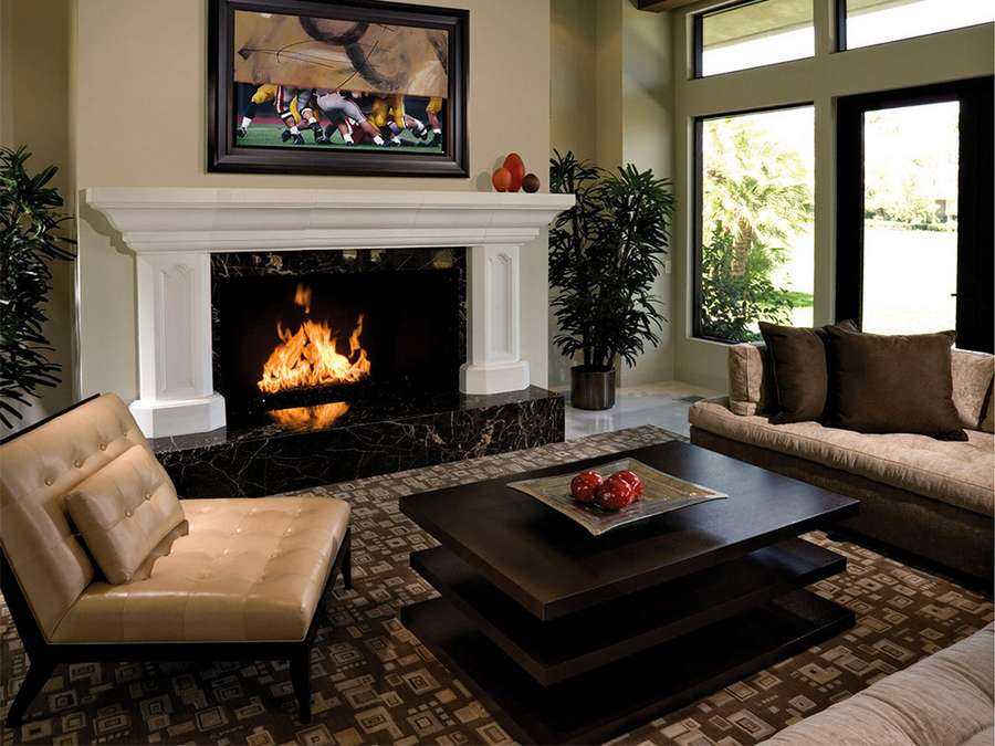 Камины являются скорее стильным дополнением интерьера, чем эффективным источником тепла. Для того чтобы камин мог обогреть хотя бы комнату, в его конструкцию нужно внести серьезные изменения, превратить его в классическую печь, лишь внешне напоминающую камин. В таком псевдокамине сохраняют полку, а пламя закрывают дверцей из огнеупорного стекла.