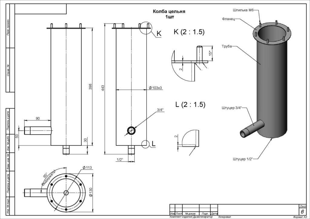 Для того, чтобы было проще выполнять процесс сборки, стоит изучить чертежи дымогенератора из трубы.