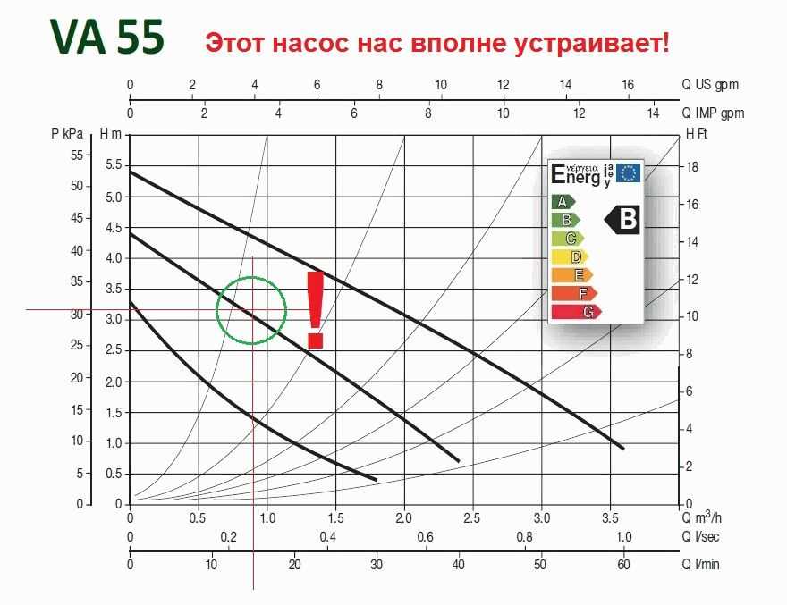 Тут расстояние между точками A и B – минимальны, и поэтому данный насос подходит.