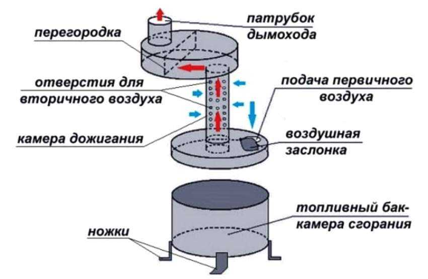 Вариант отопительного устройства без водяной рубашки: схема и принцип работы печки на отработке