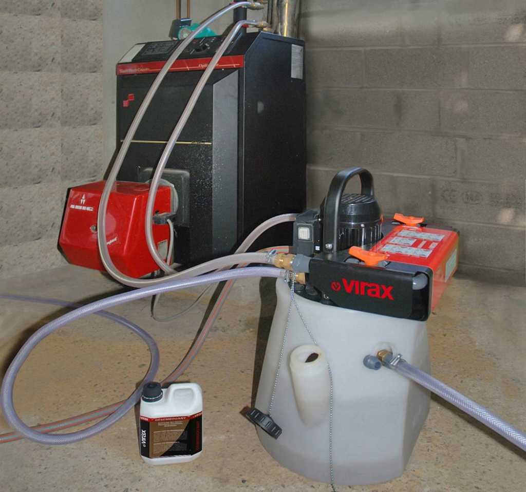 Это умный и безопасный способ, хоть и более затратный в финансовом плане. Суть его состоит в подключении к газовому котлу специального устройства, которое функционально напоминает насос. Это устройство на протяжении некоторого времени гоняет по теплообменнику газового котла специальные высокоэффективные химические реагенты.