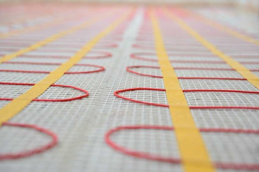 Нагревательные маты. Представляют собой тонкий кабель, распределенный по сетке из стеклоткани. Существует два вида нагревательных матов: одножильные и двужильные. Одножильные маты не рекомендуют использовать для жилых помещений, так как они излучают магнитное поле. Система нагревательных матов не требует выполнения дополнительной стяжки. Ее, как правило, располагают в клеевом слое облицовки пола, выполненной из плитки или керамогранита.