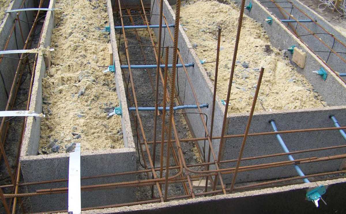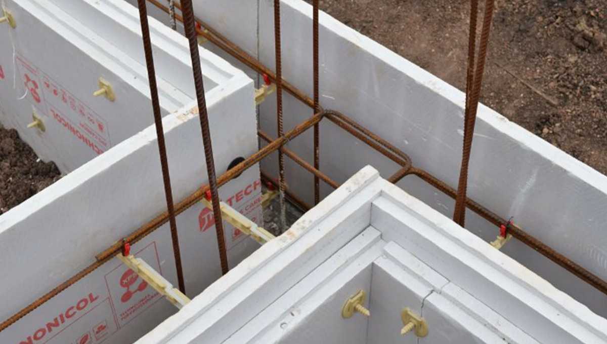 Опалубка размещается на слое гидроизоляции и крепится в пазы, такая технология создает крепкую заливку бетонным раствором, в результате которого отсутствует утечка смеси в стыках. Заливая опалубку, запрещается использовать подогретые растворы, они способны образовать конденсат в больших количествах, что увеличит влажность помещения. Применяя несъемную опалубку, обеспечивается дом с хорошим слоем теплоизоляции, который потребует только покрытие пенополистирольных плит облицовочным материалом.