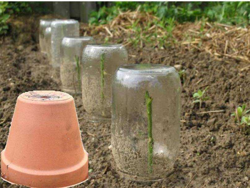 - Расставляем утром по всему участку стеклянные банки одинакового объема и переворачиваем их горлышком к земле;