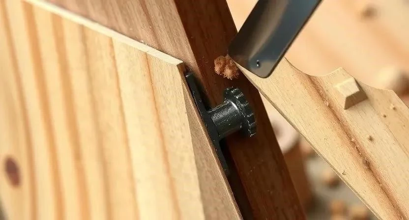Установите петли на дверное полотно и дверную коробку. Врежьте петли в дерево с помощью стамески. Навесьте дверь на петли и отрегулируйте ее положение. Важно, чтобы дверь открывалась и закрывалась плавно, без заеданий. Я всегда проверяю работу петель несколько раз, чтобы убедиться в их надежности.