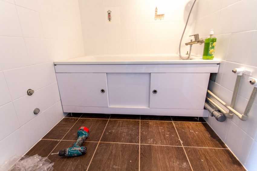 Глухие экраны или имеющие лишь ревизионное окошко для доступа к системе слива. Как говорилось выше – это далеко не лучший вариант конструкции, особенно для ванной в квартире многоэтажки. При большом желании подобный экран допустим в ванной частного дома, где полностью отсутствует риск залить соседей снизу. Но в этом случае следует быть готовым к возможности проявления плесени из-за плохо вентилируемого пространства в условиях повышенной влажности.