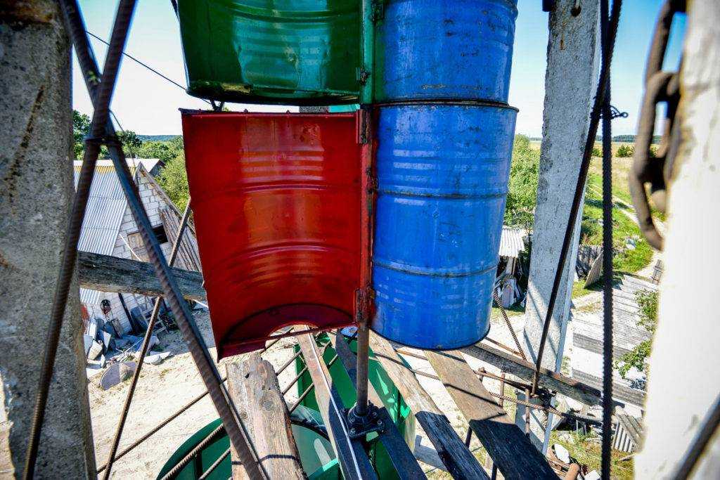 Это — «народное» название многолопастного карусельного (вертикального) ветрогенератора. Устройство имеет хороший баланс, эффективно захватывает поток ветра, низкий уровень шума. Для желающих попробовать силы в изготовлении ветряк своими руками этот вариант конструкции рекомендуется как один из базовых типов конструкции. Лопасти делаются из листовой оцинкованной стали, разрезанных вдоль бочек или иного подручного материала.