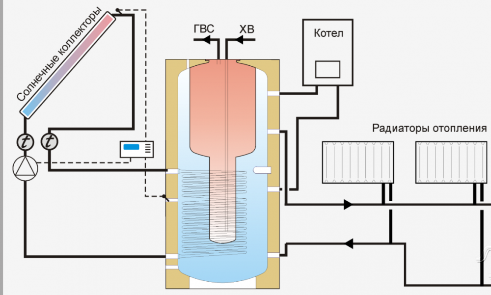 - Тепловой аккумулятор (обычная емкость под жидкость)