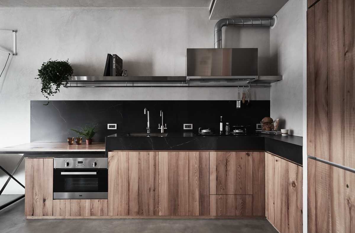 Самым популярным и распространенным материалом, из которого изготавливается встроенная мебель для кухни, считается ЛДСП (ламинированная древесно-стружечная плита). Материал получают прессованием древесных опилок с участием фенолформальдегидных смол в качестве связующего элемента. Недорогой и практичный, имеет множество расцветок, имитирующих камень, дерево, кожу и пр. Ламинат обладает прочностью, влагостойкостью и устойчивостью к воздействию химических веществ.