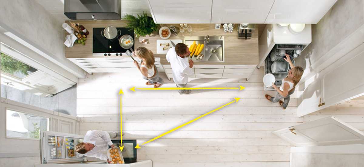 Рабочий треугольник на кухне: как правильно расставить мебель