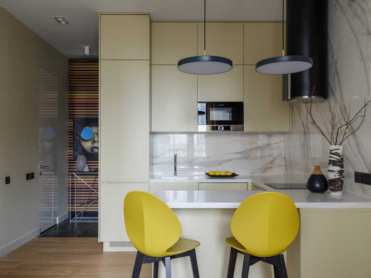 К слову о маленьких кухнях. На миниатюрных пространствах совершенно непросто выстроить кухонный рабочий треугольник. Однако даже на 5-6 кв.м можно поставить холодильник отдельно от линии рабочего пространства. Таким образом получится треугольник. Но даже если все вершины классического треугольника расположены в один ряд – не беда. Просто не располагайте их рядом друг с другом, отделив одну от другой, например, тумбой со столешницей.